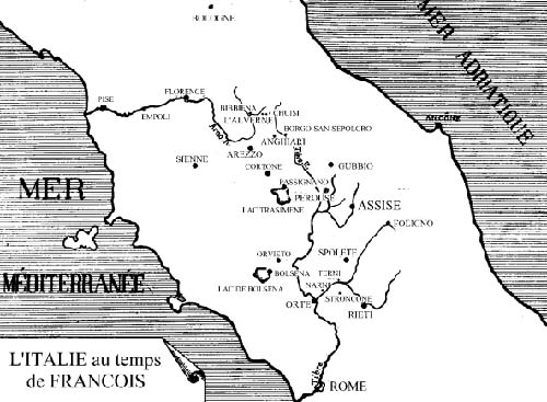 O jovem François Bernardone viverá todos estes eventos. François tem 16 anos quando os habitantes de Assis assaltam e destroiem a fortaleza feodal e imperial que domina a vila. A Comuna é proclamada quando este tem 18 anos. Aos 20 anos, parte para a guerra com muitos outros companheiros, contra Perugia, a vila vizinha, distante de vinte quilómetros de Assis. Será feito prisoneiro e a sua detenção durará um ano.