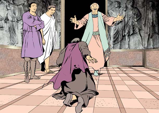 O rei respondeu: «Servo mau, puseste os teus olhos impuros em minha esposa? É claro que querias comprar o que sorrateiramente estiveste apreciando».